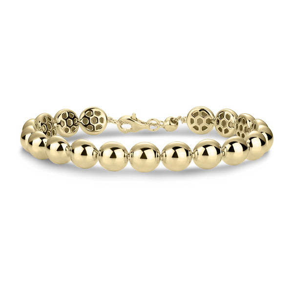 Elevate your style with this stunning gold-plated beaded bracelet, designed to bring a touch of timeless sophistication to any look. Featuring smooth, polished gold-tone spheres, this bracelet exudes a radiant shine that catches the light beautifully.