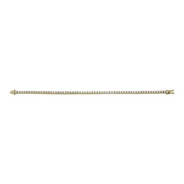 This exquisite Brilliant Tennis Bracelet adds a touch of sophisticated elegance to any outfit. Crafted in sparkling silver and yellow gold with glittering stones, this timeless piece is perfect for those who like to sparkle. Treat yourself or someone special with this classic bracelet.