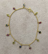 Delicate pre-loved 18ct yellow gold ruby, sapphire and peridot bracelet