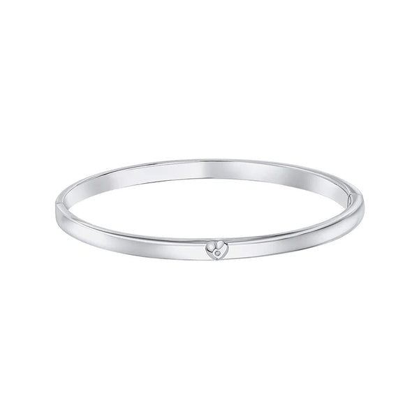 Step into the enchanting world of childhood wonder with this lovely hinged maiden bangle. Crafted with care from recycled sterling silver and finished with a platinum plating, the slightly larger size of this bangle is perfect for tweens. At the heart of this charming piece lies a delicate diamond, nestled within the sweet motif of a heart. It's a subtle yet stunning touch that adds a sparkle to any ensemble.