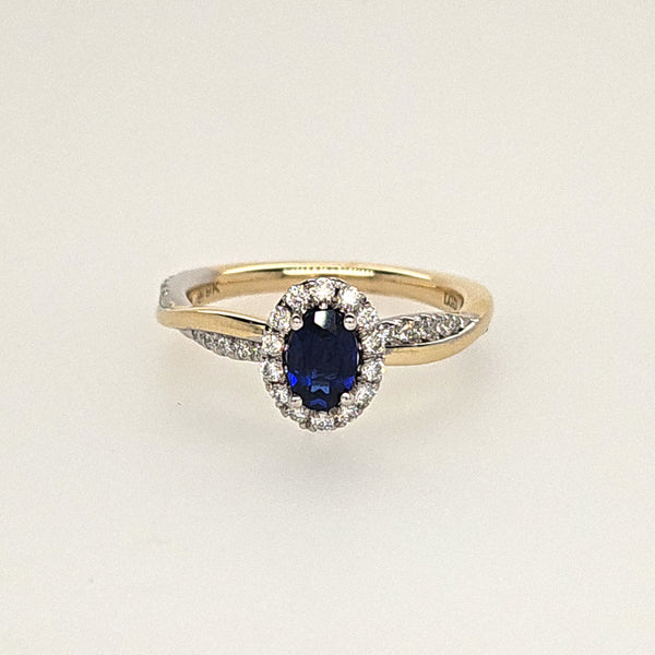 Laboratory Grown 9ct Yellow and White Gold Diamond and Sapphire Ring.