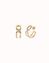 Double 18K gold-plated hoop earrings with white central topaz. Made in Spain with a 100% handmade process.A collection in which topaz, clean lines and geometric shapes become protagonists, without filters. A collection ready to wear at any time or situation. Discover the collection ser indomable.