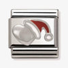 Nomination Original Charm for Composable Classic Bracelet with Heart with Christmas Hat symbol in stainless steel, sterling silver and enamel. Also available in other Christmas symbols. Made in Italy. The perfect Christmas gift.