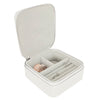 This classic Carters jewellery box presents the perfect storage solution for those on-the-go, or for keeping your essentials in an organised fashion close-to-hand. A chic square body in chalk white presents 2 compartments, a ring roll and zip.