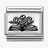 Original Nomination Link for Composable Classic Bracelets in stainless steel and sterling silver with Book with flowers symbol in Black engraving. Made in Italy. This Link is the perfect gift for someone who loves to read.