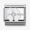 Original Charm for Nomination's Composable Classic Bracelet with white Clover in stainless steel, sterling silver, enamel and Cubic Zirconia. Made in Italy. Wear precious little details and let big things happen.