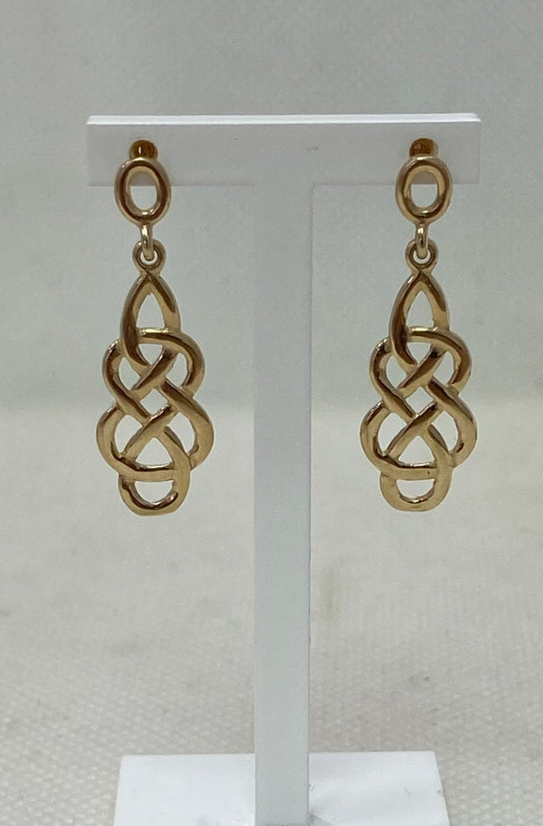 Pre-loved 9ct yellow gold Celtic drop earrings,