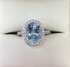 9ct white gold oval aquamarine and diamond halo cluster ring