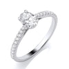 9ct white gold laboratory grown diamond oval ring with diamond set shoulders.