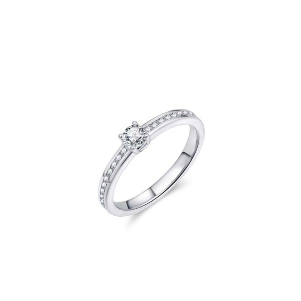 This luxuriously crafted Daily Essentials Solitaire Ring is exquisitely crafted with a classic stone of zirconia set on a silver base to bring a hint of sparkle and glamour to your everyday wardrobe. Half of the band is further adorned with a delicate row of shimmering zirconia in a secure rail setting. Let this timeless ring bring out your inner elegance and sophistication.