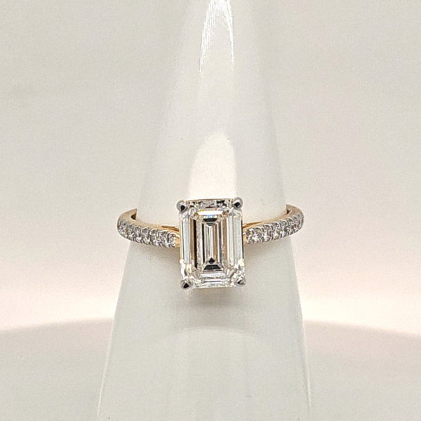 18ct yellow gold emerald cut laboratory grown 1.50ct diamond ring.